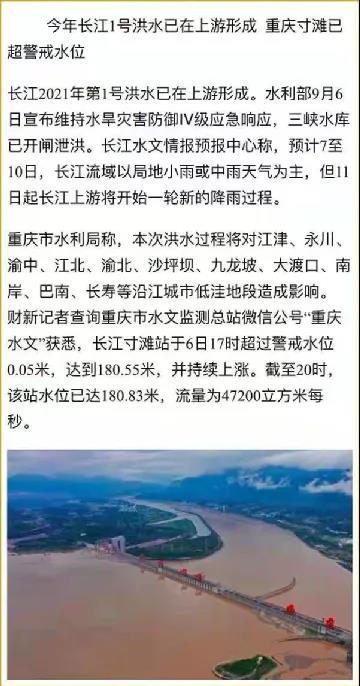 重慶市水利局稱,本次洪水過(guò)程將對(duì)江津、永川、渝中、江北、渝北、沙坪壩、九龍坡、大渡口、南岸、巴南、長(zhǎng)壽等沿江城市低洼地段造成影響。