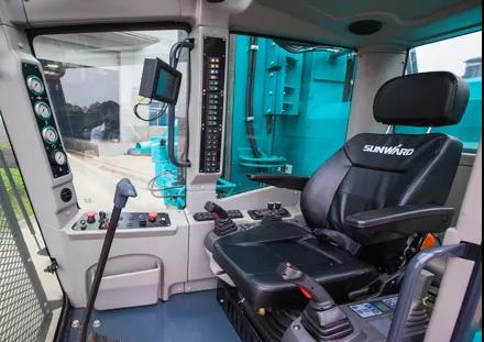 4.人文關(guān)懷,安全保障。司機(jī)室裝有冷暖空調(diào)、正壓系統(tǒng)、新風(fēng)系統(tǒng)等,讓操作手遠(yuǎn)離職業(yè)病傷害,此外,鉆機(jī)上還安裝了急停按鈕、滅火器等,充分保障使用者的人身安全。