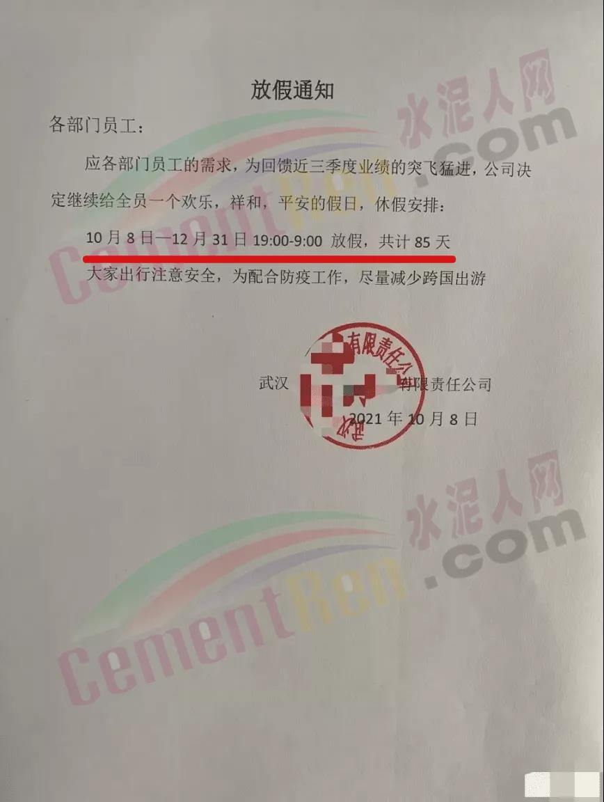 近日,湖北武漢某企業(yè)發(fā)布放假通知,稱應(yīng)各部門員工的需求,為回饋近三季度業(yè)績的突飛猛進(jìn),決定繼續(xù)給全員一個(gè)歡樂,祥和,平安的假日,休假安排:10月8日一12月31日19:00-9:00放假,共計(jì)85天。