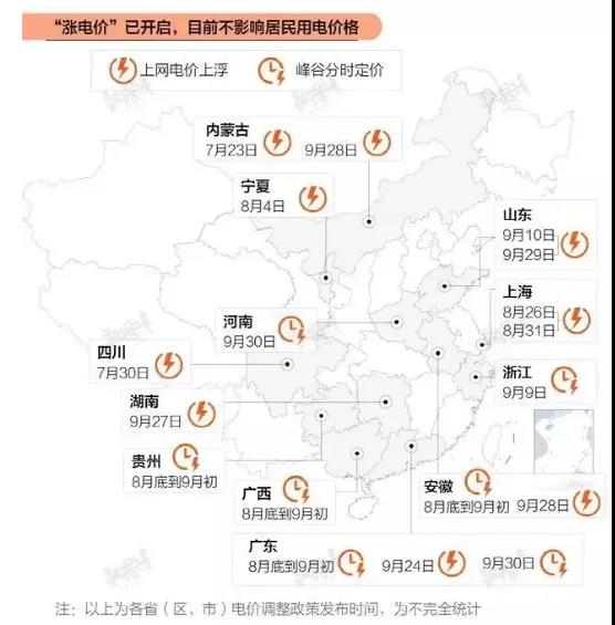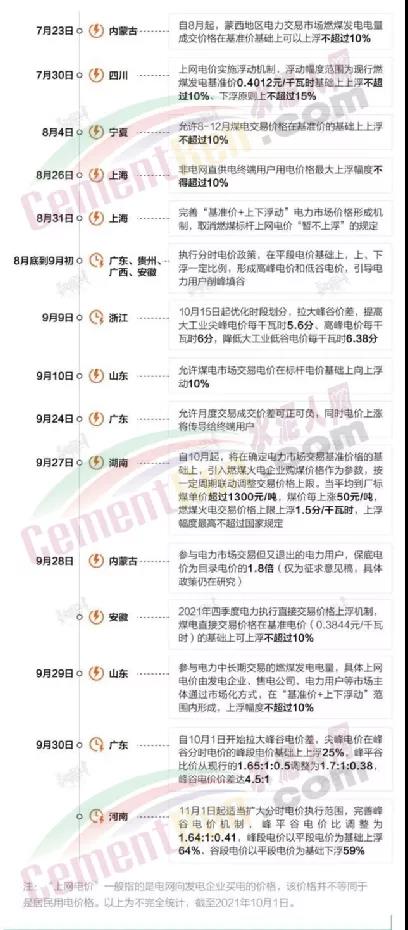 在發(fā)改委通知文件之前,因能耗雙控“限電潮”影響,部分省市地區(qū)就已率先提出“上網(wǎng)電價”上浮。
