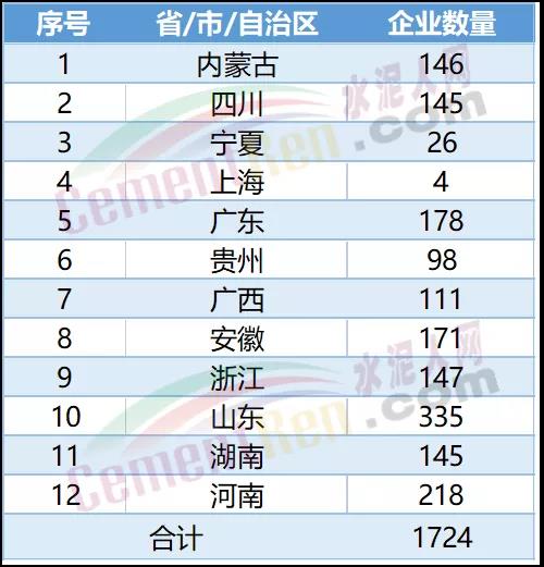 上述14個省市自治區(qū)涉及水泥企業(yè)數(shù)量近1700多家,除上海市外多是水泥大省,山東水泥企業(yè)數(shù)量達到300家以上,廣西、湖南等區(qū)域又為近兩年新建產(chǎn)能競相投資的重點區(qū)域。