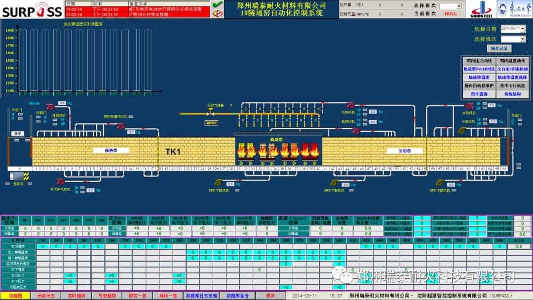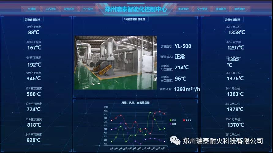 鄭州瑞泰在生產系統(tǒng)中采用MES系統(tǒng),并實現(xiàn)與ERP、DCS、PLC等系統(tǒng)的集成運行。采用條碼管理系統(tǒng),通過在PLM系統(tǒng)中使用,實現(xiàn)對產品全生命周期質量實時追溯。通過上線質量管理系統(tǒng),產品質量信息可在線自動檢測、自動記錄。集控系統(tǒng)提供隧道窯、環(huán)保設備各項指標實時監(jiān)測管理,具有數(shù)據采集、顯示、存儲、統(tǒng)計報表、打印、告警等功能。建立管控一體的中央控制室,主要用能設備實現(xiàn)實時監(jiān)測與控制。創(chuàng)建軟硬件安全運行環(huán)境,確保網絡安全應急響應、實時恢復及安全可控。