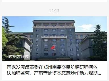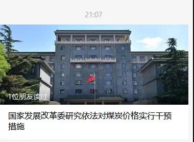 19日21:07分,《國家發(fā)展改革委研究依法對煤炭價格實(shí)行干預(yù)措施》提到發(fā)改委將研究依法對煤炭價格實(shí)行干預(yù)措施,促進(jìn)煤炭價格回歸合理區(qū)間。