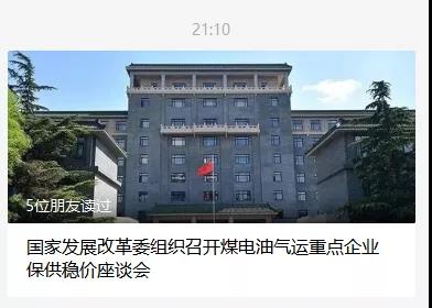 21:10分《國家發(fā)展改革委組織召開煤電油氣運(yùn)重點(diǎn)企業(yè)保供穩(wěn)價座談會》,提到發(fā)改委將推出八大舉措促進(jìn)煤電油氣運(yùn)重點(diǎn)企業(yè)保供穩(wěn)價。