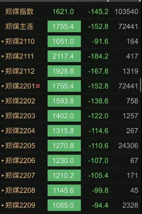 據(jù)統(tǒng)計,截至23:00,共有39個合約跌停。動力煤更是全合約(12個)封死跌停板!