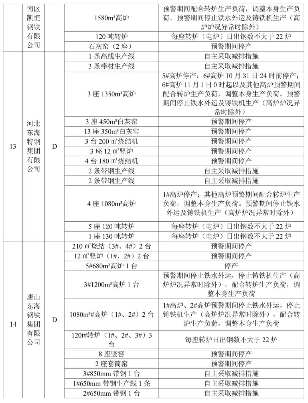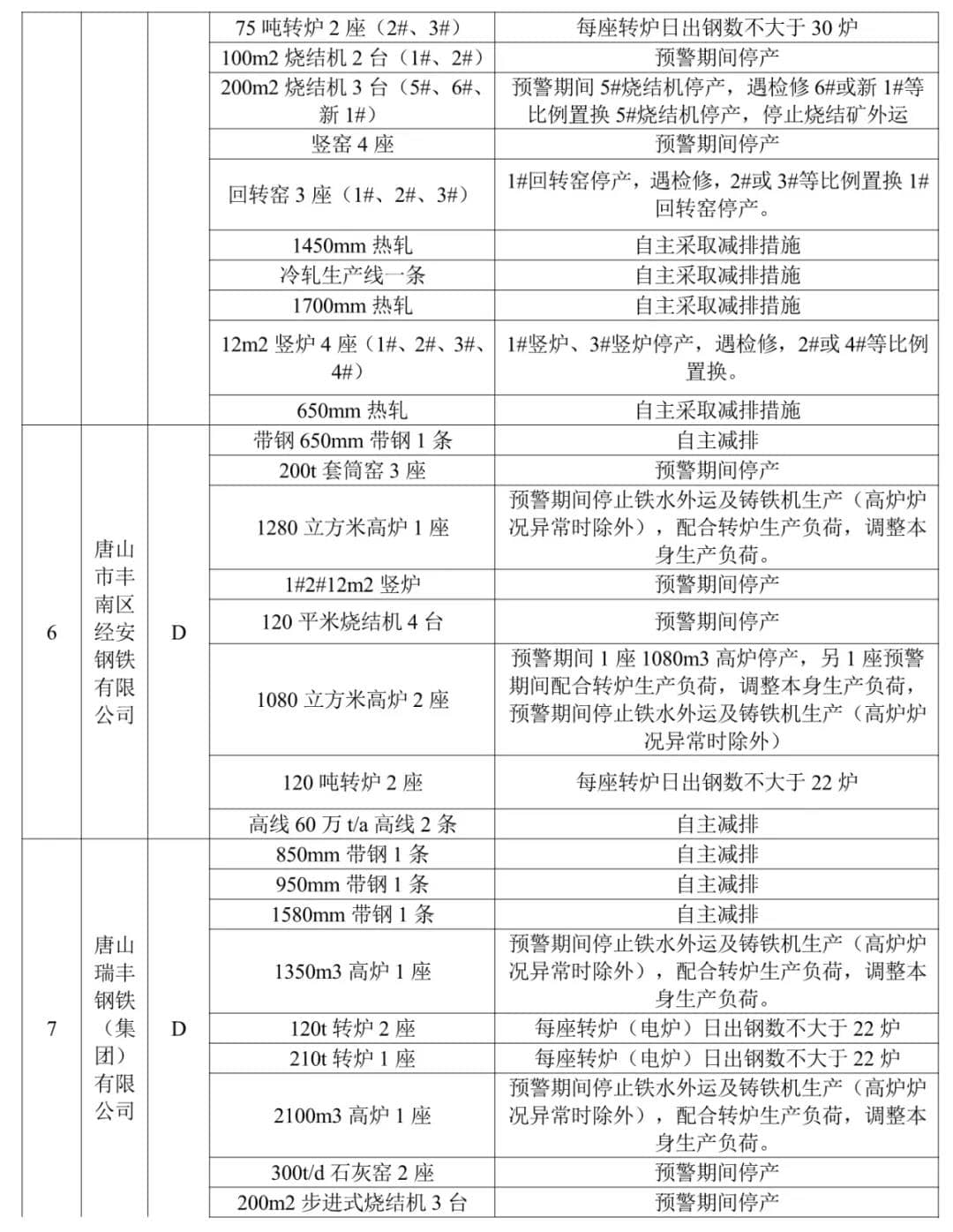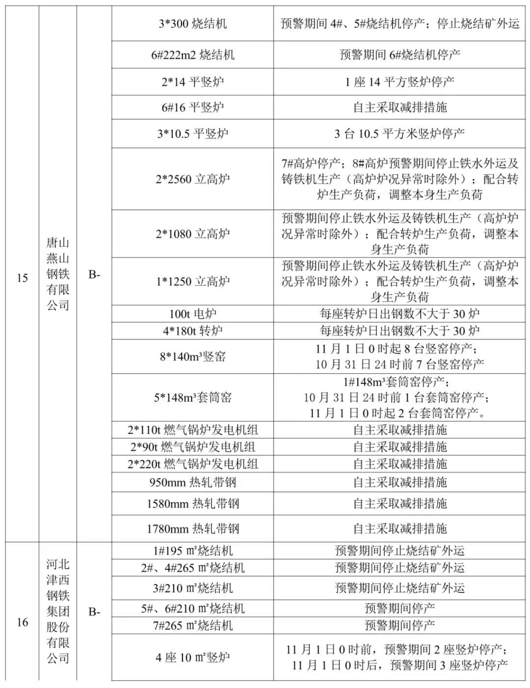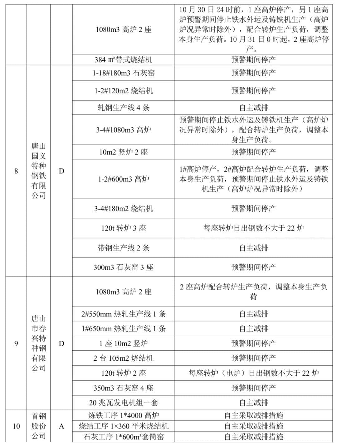 3.水泥熟料企業(yè)(特種水泥除外)。冀東啟新、冀東三友、冀東灤州、冀東唐山分公司、泓泰水泥自主減排;飛龍水泥、燕東水泥、燕南水泥、曙光強(qiáng)興水泥、磐石水泥、圣龍水泥、耀東水泥、弘也水泥旋窯實(shí)施生產(chǎn)調(diào)控。