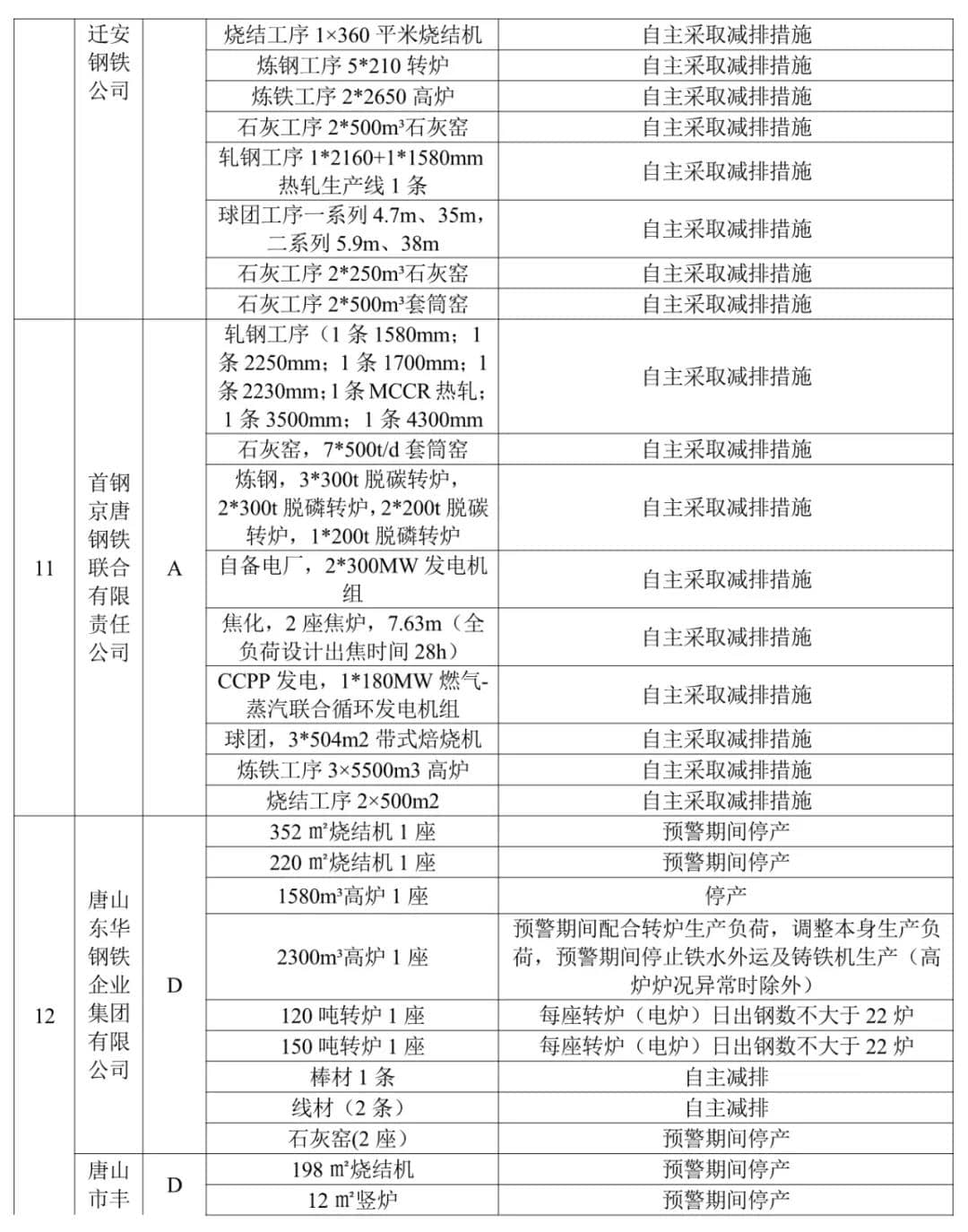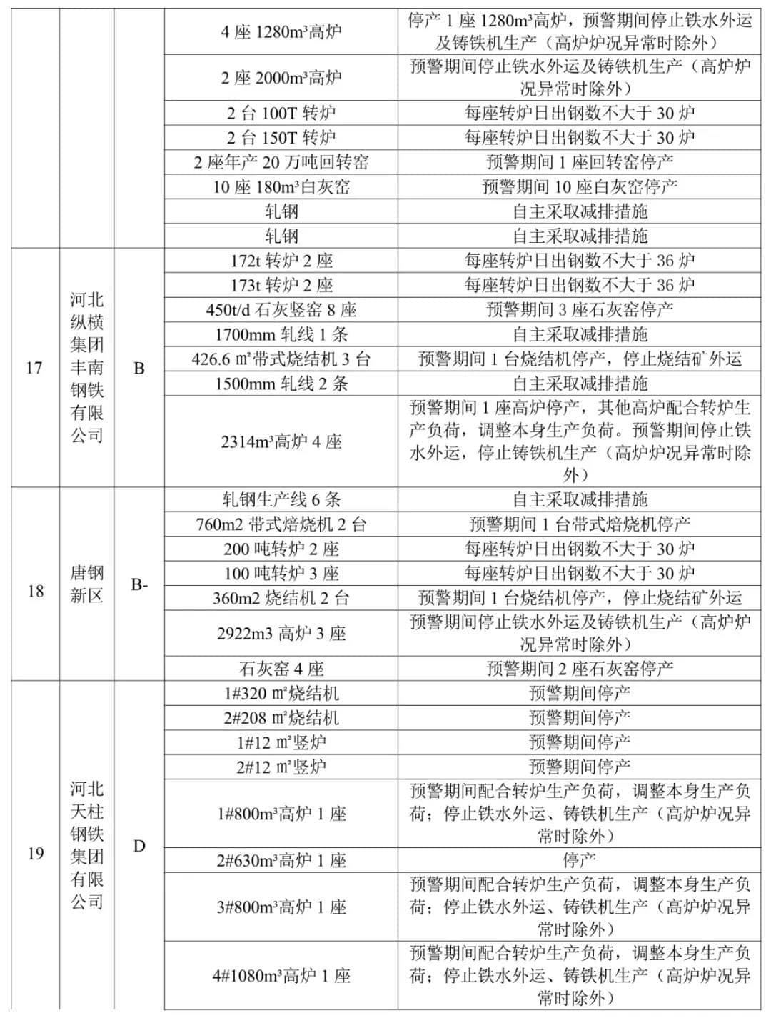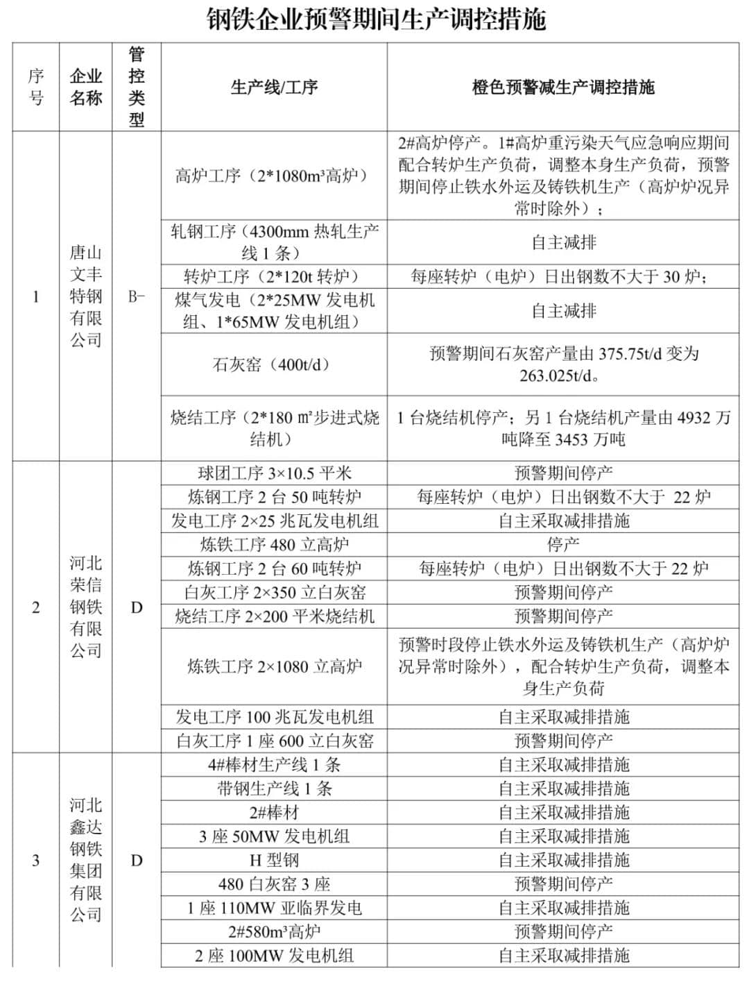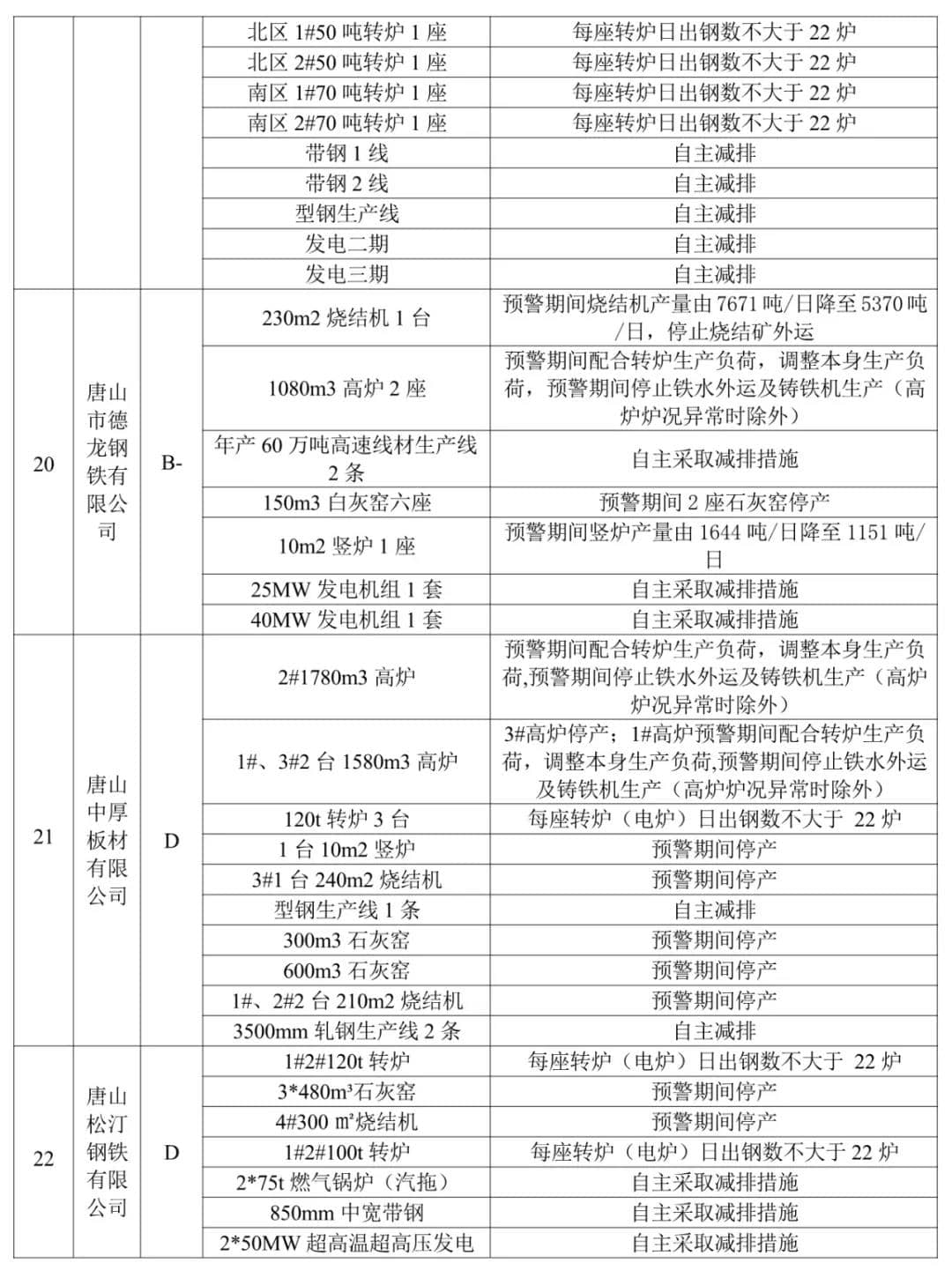 3.水泥熟料企業(yè)(特種水泥除外)。冀東啟新、冀東三友、冀東灤州、冀東唐山分公司、泓泰水泥自主減排;飛龍水泥、燕東水泥、燕南水泥、曙光強(qiáng)興水泥、磐石水泥、圣龍水泥、耀東水泥、弘也水泥旋窯實(shí)施生產(chǎn)調(diào)控。