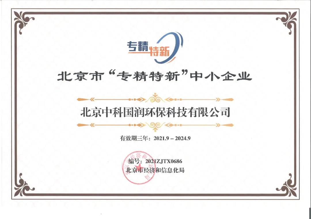 2021年9月14日,北京市經(jīng)濟(jì)和信息化局公布了北京市2021年度第五批“專精特新”中小企業(yè)名單,北京中科國(guó)潤(rùn)環(huán)??萍加邢薰境晒θ脒x!