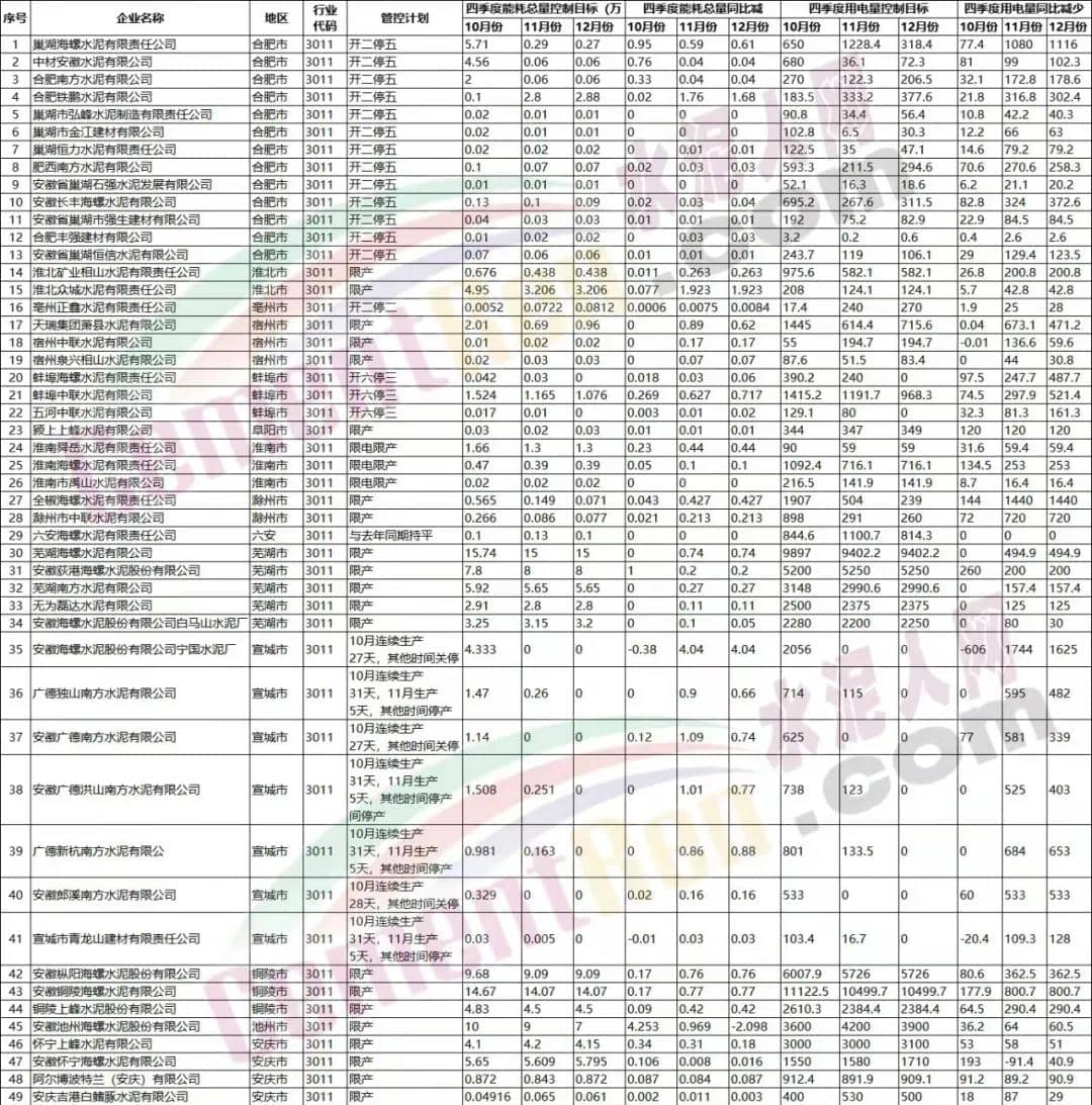 水泥人網(wǎng)注意到,通知文件附件各市“兩高”重點企業(yè)2021年內(nèi)用能(電)管控計劃名單中包括海螺水泥、南方水泥、中材水泥、天瑞水泥、上峰水泥、磊達(dá)水泥等近百家水泥及混凝土生產(chǎn)企業(yè)。