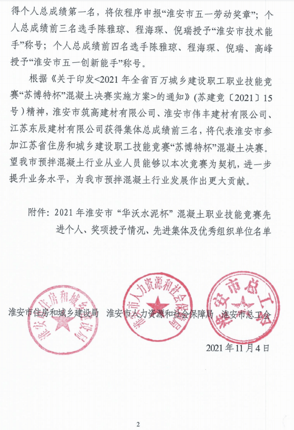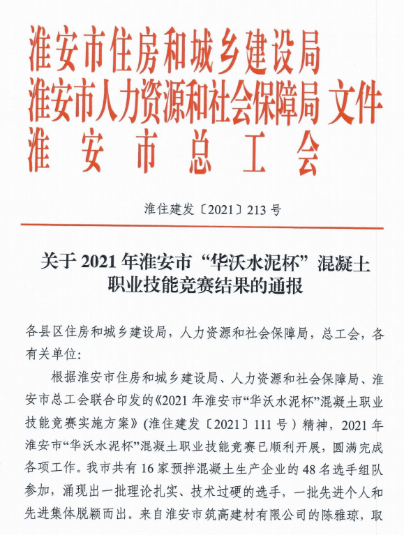 日前,?2021年淮安市“華沃水泥杯”混凝土職業(yè)技能競賽已圓滿完成各項工作,共有16家預(yù)拌混凝土生產(chǎn)企業(yè)的48名選手組隊參加,涌現(xiàn)出一批理論扎實、技術(shù)過硬的選手,一批先進個人和先進集體脫穎而出。
