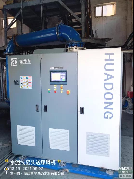 陜西富平生態(tài)水泥有限公司是陜煤化集團陜西生態(tài)水泥股份有限公司所屬全資子公司,此前,其5000T/D水泥生產(chǎn)線上使用的4臺羅茨鼓風(fēng)機(其中2臺功率為250KW,2臺為185KW),存在嚴(yán)重的能耗高、噪音大且經(jīng)常需要維修保養(yǎng)的問題。為貫徹環(huán)保、節(jié)能、可持續(xù)發(fā)展的經(jīng)營理念,綜合比較多款風(fēng)機后,富平生態(tài)水泥最終決定決定采用山東華東風(fēng)機有限公司(以下簡稱“華東風(fēng)機”)的磁懸浮高速離心鼓風(fēng)機對原有的羅茨風(fēng)機進行更換。