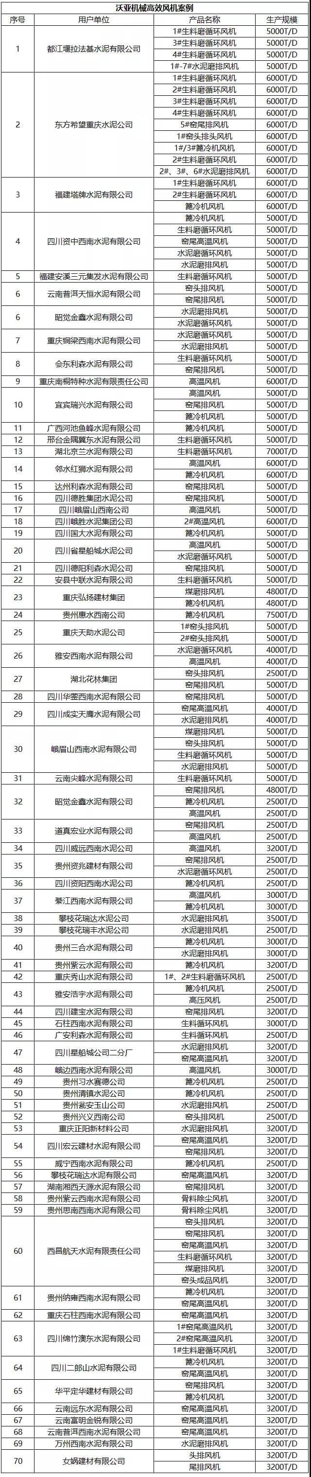 此外,沃亞機(jī)械還先后為金隅冀東水泥、東方希望、西南水泥、塔牌水泥、星船城水泥等多個(gè)大型水泥企業(yè)提供高效風(fēng)機(jī)改造服務(wù),在推動(dòng)水泥行業(yè)綠色發(fā)展領(lǐng)域做出了突出貢獻(xiàn)。