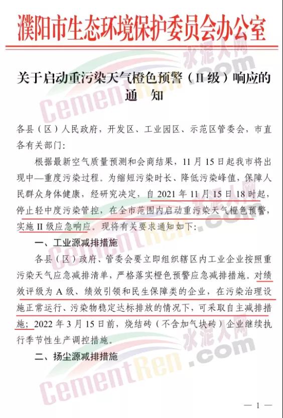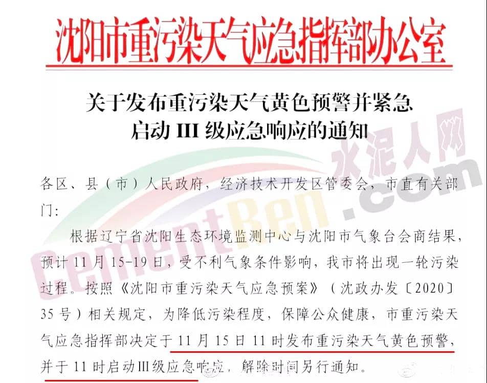 同期河南、山東、山西、遼寧部分區(qū)域也發(fā)布了重污染天氣預(yù)警,多區(qū)域要求區(qū)域內(nèi)水泥企業(yè)窯磨全停。