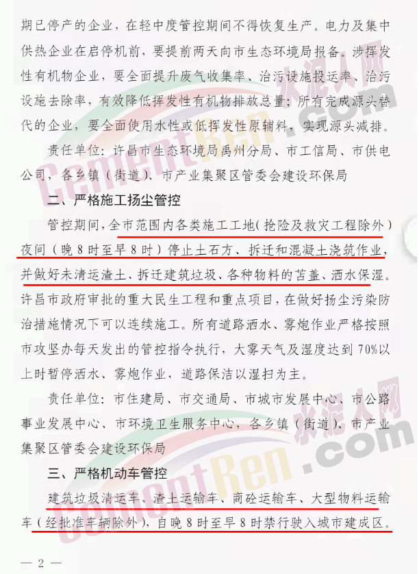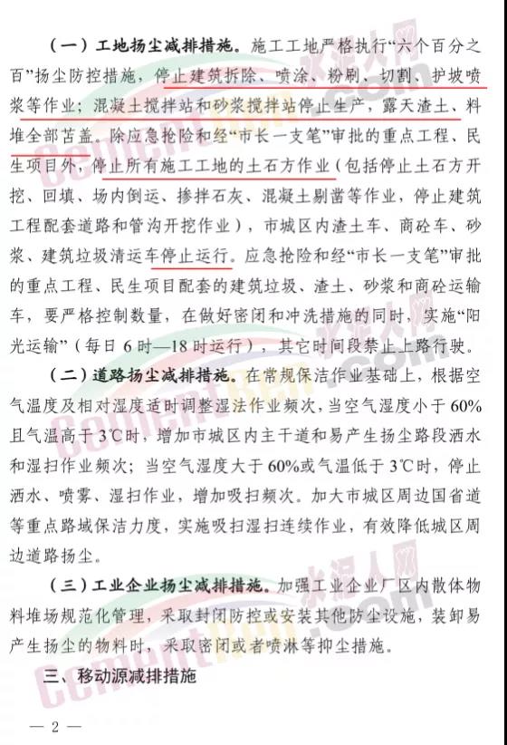 2.除應(yīng)急搶險外,全市施工工地停止土石方、建筑拆除、噴涂粉刷、護(hù)坡噴漿作業(yè)。