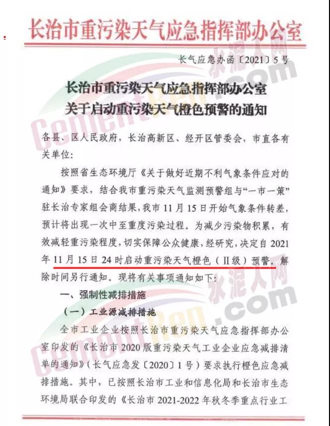 根據(jù)氣象預(yù)測,自11月16日起,我市受弱氣壓場控制,風(fēng)力小、濕度大,擴(kuò)散條件差,將出現(xiàn)中至重度污染過程,達(dá)到橙色預(yù)警水平。為有效應(yīng)對此輪污染過程,最大限度減輕污染程度,市重污染天氣應(yīng)對指揮部決定,自2021年11月15日18時全市啟動重污染天氣Ⅱ級應(yīng)急響應(yīng),解除時間另行通知?,F(xiàn)將有關(guān)事項通知如下: