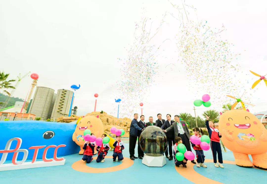 眾嘉賓與臺(tái)泥韶關(guān)廠周邊小學(xué)生在臺(tái)泥戲水樂園開園慶典上共同按動(dòng)水晶球