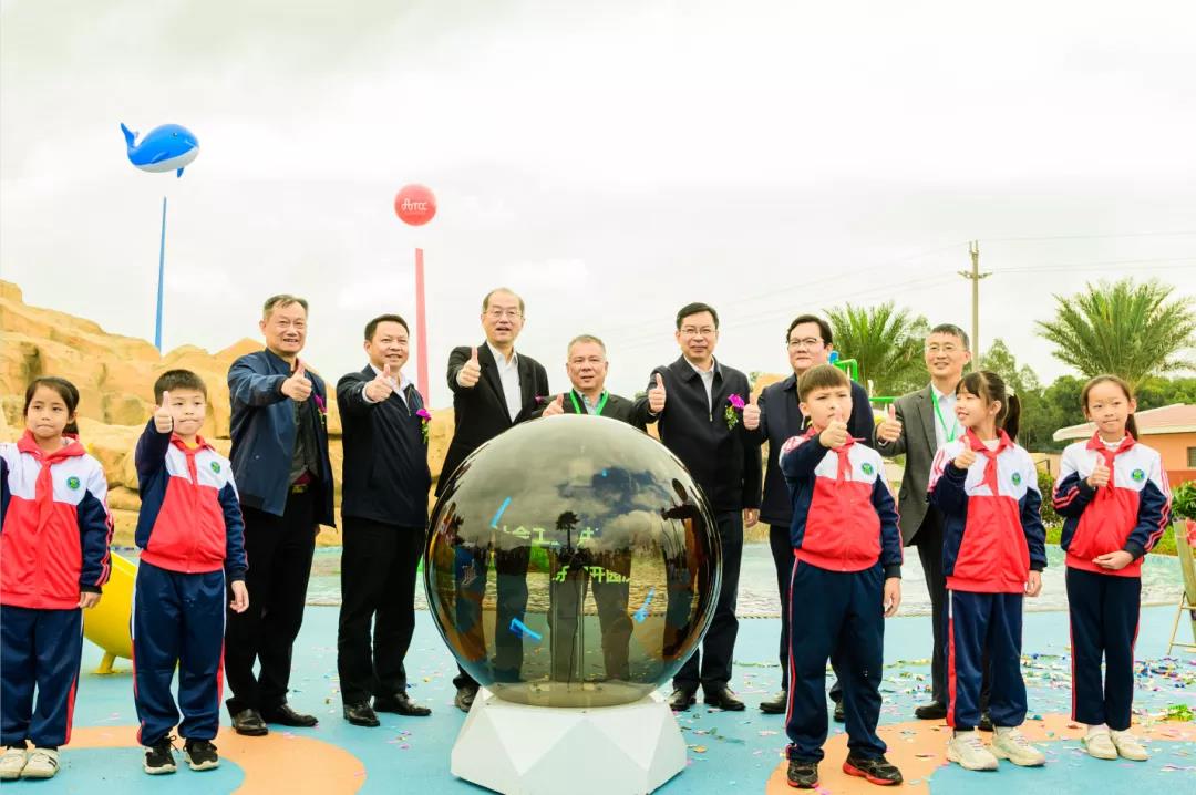 眾嘉賓與臺(tái)泥韶關(guān)廠周邊小學(xué)生以及臺(tái)泥環(huán)保大使GEMMA圓寶慶賀戲水樂園開園