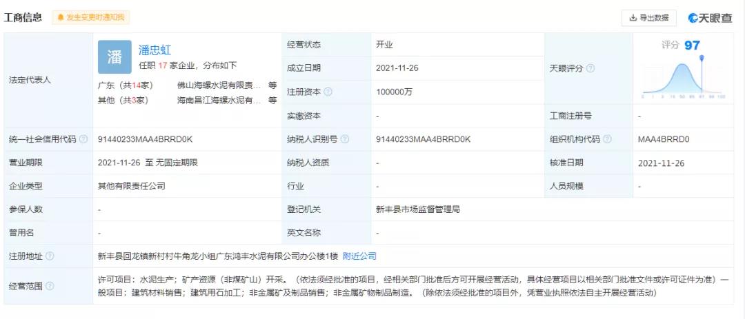 圖:廣東海螺鴻豐水泥有限公司工商注冊信息