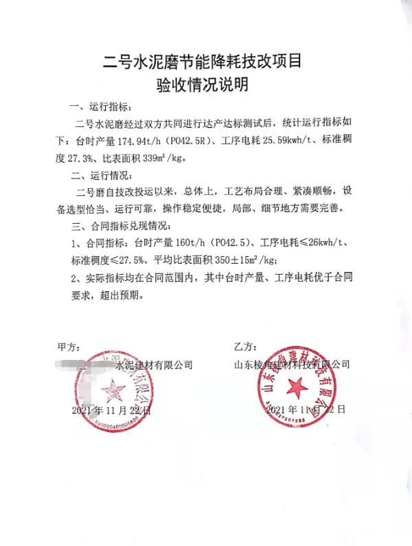 結(jié)束語:山東棱角近三年來承接了山東某公司100萬噸/年水泥粉磨站EPC工程、云南某公司2#水泥磨系統(tǒng)節(jié)能降耗技改EPC工程,在項(xiàng)目初設(shè)、設(shè)備選型、圖紙設(shè)計、土建施工、設(shè)備安裝、非標(biāo)制安、生產(chǎn)調(diào)試等,把控項(xiàng)目的各個階段,安全施工、嚴(yán)把質(zhì)量、緊扣工期節(jié)點(diǎn),均超額完成項(xiàng)目預(yù)期指標(biāo),向業(yè)主遞交了滿意答卷,展現(xiàn)了山東棱角建材科技有限公司從設(shè)計、建設(shè)到調(diào)試“一條龍”綜合服務(wù)的優(yōu)異能力。