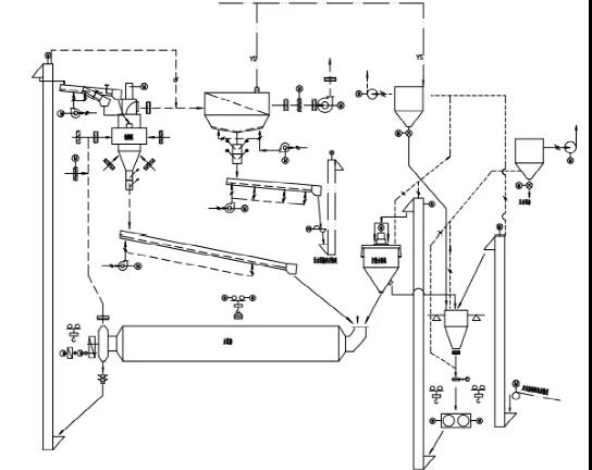 該項(xiàng)目技改前,輥壓機(jī)系統(tǒng)配置120/50輥壓機(jī)、Y280S-6打散分級機(jī),磨機(jī)Φ3.2米*13米(邊緣傳動),配置N2000 O-Sepa選粉機(jī)、高濃度收塵器組成輥壓機(jī)聯(lián)合粉磨系統(tǒng);受系統(tǒng)配置制約,磨機(jī)平均臺時(PO42.5)85t/h,系統(tǒng)能耗偏高。技改后,利用原有水泥磨,在現(xiàn)有磨房西北側(cè)新建輥壓機(jī)系統(tǒng)框架,并新建二層電力室,以滿足技改后設(shè)備供電需求;選用160/140輥壓機(jī)+高效動態(tài)選粉機(jī)組成輥壓機(jī)閉路系統(tǒng),選用磨機(jī)(利舊)+高效渦流組合選粉機(jī)組成水泥磨閉路系統(tǒng);改后2#水泥磨系統(tǒng)形成雙閉路輥壓機(jī)半終粉磨工藝,并生產(chǎn)出合格水泥,實(shí)現(xiàn)了業(yè)主方利用短暫市場淡季完成技改工程對接投產(chǎn)的計劃,有力的保證了業(yè)主方生產(chǎn)經(jīng)營不受影響。