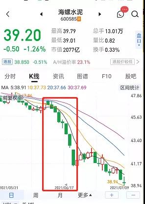 今年以來海螺水泥股價(jià)一直“萎靡不振”。自從去年7月份股價(jià)到63.56元見頂后,便步入了一個(gè)標(biāo)準(zhǔn)的下跌通道,今年6月份更是加速下跌出現(xiàn)了“八連陰”。8月30日,海螺水泥收盤下跌4.91%,又來了個(gè)6連陰。