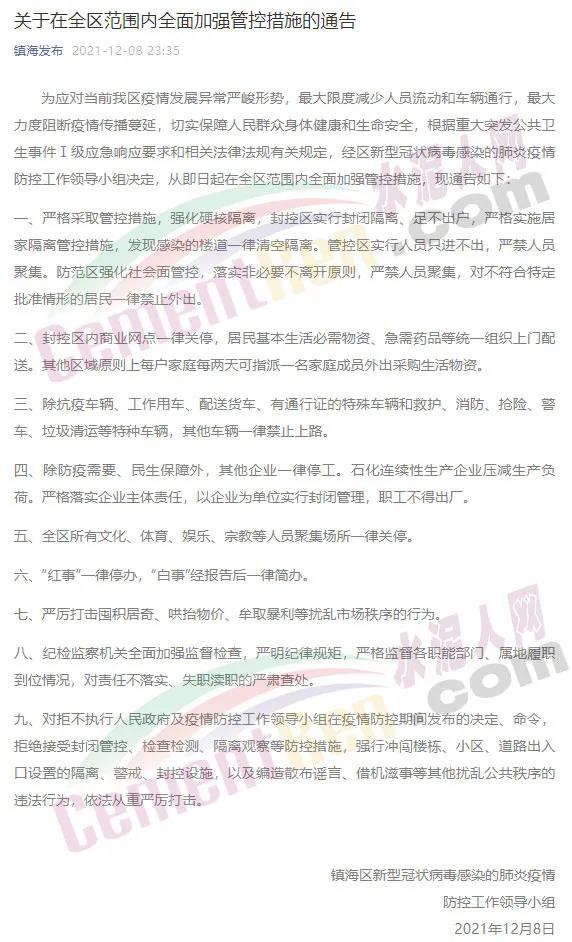 目前,寧波市繼續(xù)維持全市I級(jí)響應(yīng)不變,繼續(xù)維持鎮(zhèn)海區(qū)臨時(shí)封閉管理措施不變,浙江省嚴(yán)控跨省出行不變。