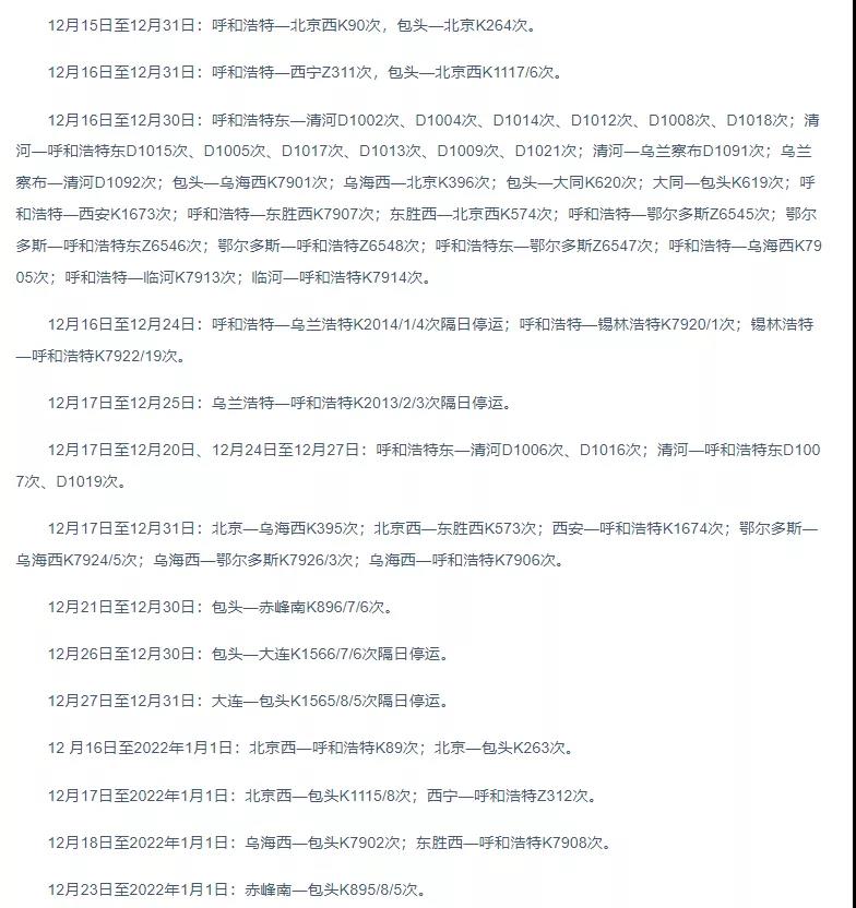 呼和浩特:部分列車(chē)臨時(shí)停運(yùn)