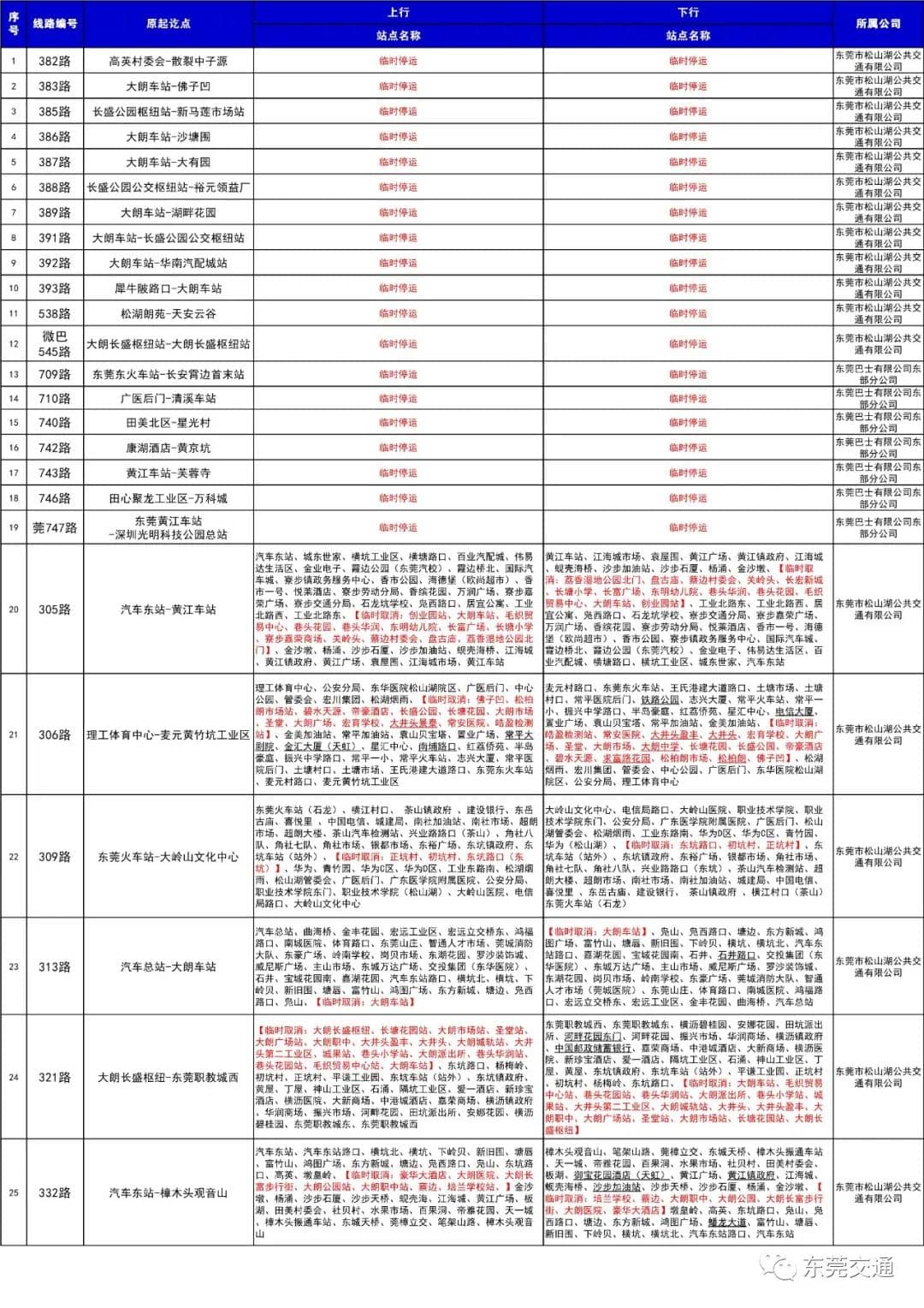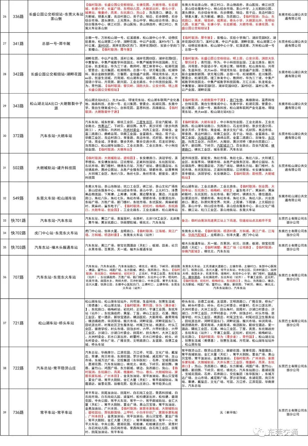 臨時(shí)停運(yùn)及調(diào)整信息表
