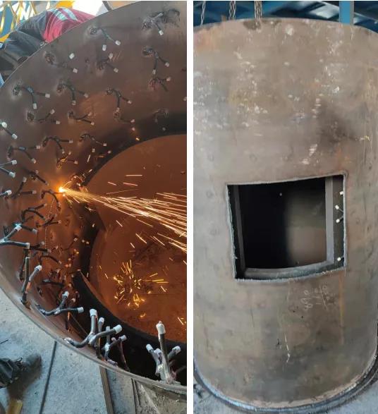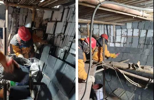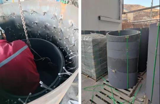 不久前,河北某水泥企業(yè)的下料管在運(yùn)行過程中由于結(jié)皮影響系統(tǒng)的通風(fēng),使阻力增大,不僅使能耗上升,而且結(jié)皮嚴(yán)重造成堵塞時(shí),有時(shí)被迫停窯處理,嚴(yán)重影響經(jīng)濟(jì)效益。為此,該水泥企業(yè)將南極星微晶管應(yīng)用于其下料管內(nèi)部,現(xiàn)場(chǎng)施工圖片如下: