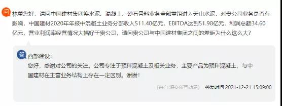 “西部建設(shè)分布在全國各地區(qū)的攪拌站都從該地區(qū)的海螺水泥廠或者經(jīng)銷商那里采購,它是海螺水泥的大客戶。而海螺水泥也有規(guī)模不小的混凝土、沙石骨料業(yè)務(wù),未來將與西部建設(shè)協(xié)同發(fā)展。”消息人士稱。