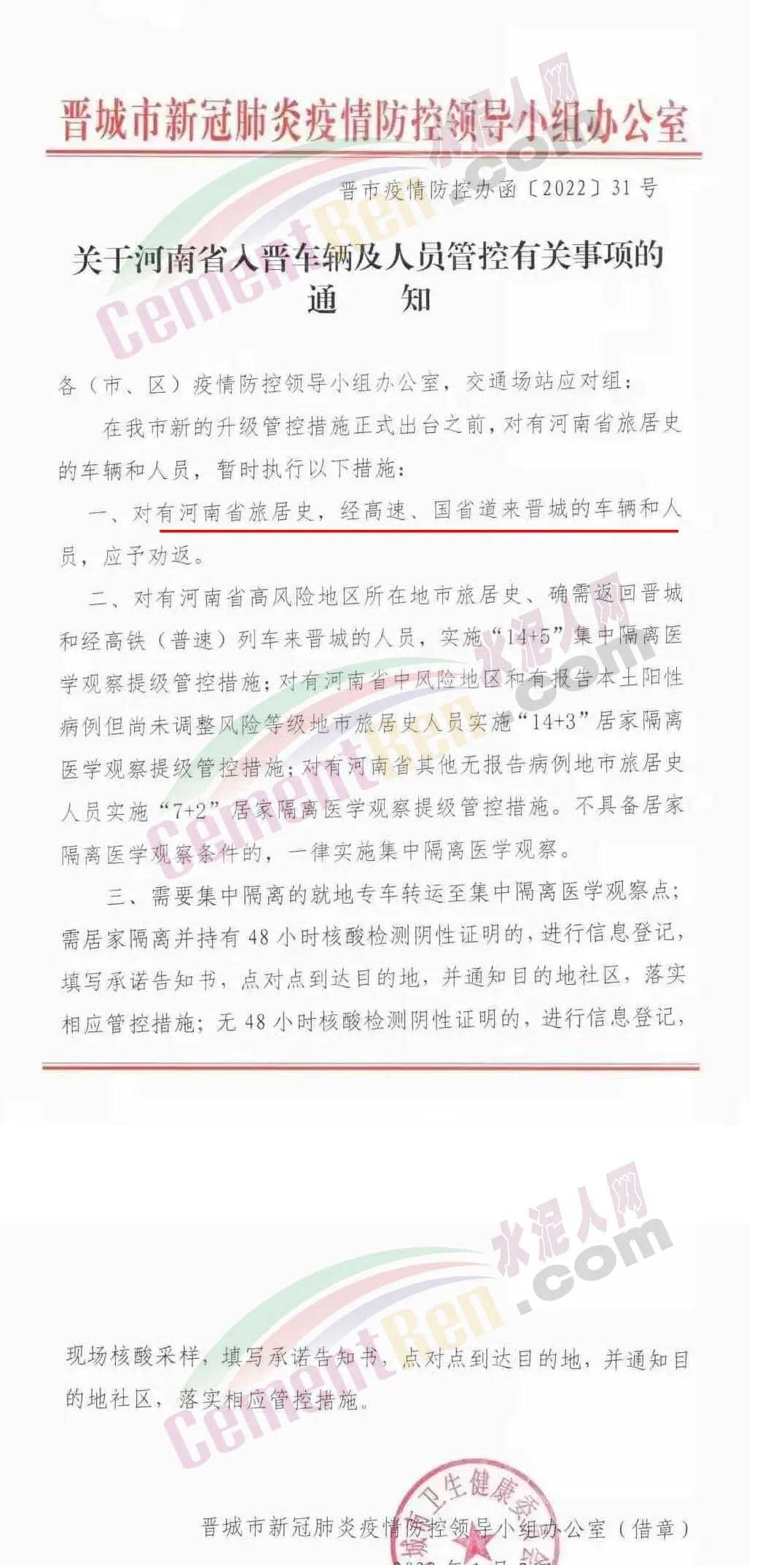晉城市疫情防控辦發(fā)布從嚴(yán)從緊升級(jí)管控措施。禁止河南省來往晉城的縣鄉(xiāng)村級(jí)道路通行。勸返有河南省旅居史,經(jīng)高速、國省道和高鐵(普速)列車來晉城的外省車輛及人員。熔斷河南省往返晉城的貨運(yùn)物流、冷鏈物流、公路客運(yùn)(包括出租車、網(wǎng)約車、順風(fēng)車、團(tuán)隊(duì)包車等)業(yè)務(wù)。