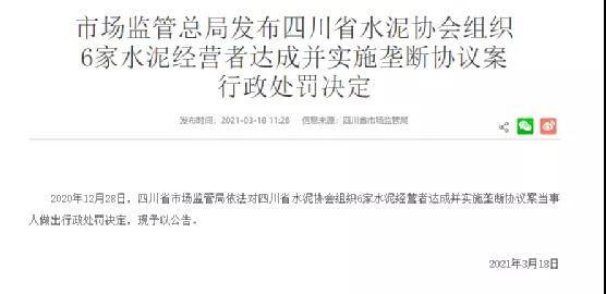 從2021年初開始,國家就加大了反壟斷的力度,先后處罰了山東、四川、陜西多個區(qū)域水泥行業(yè)企業(yè)和相關(guān)行業(yè)協(xié)會組織。