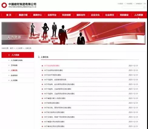 2021年12月29日-31日期間中國建材集團官網(wǎng)發(fā)布了20多條高管任免通知。其中包括水泥板塊多位高管的任免。