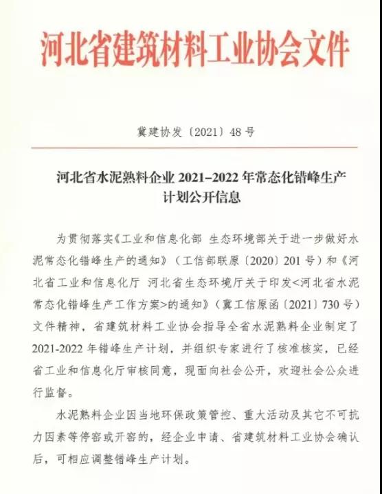截止2021底共有26個區(qū)域發(fā)布了常態(tài)化錯峰生產(chǎn)計劃,其中基準(zhǔn)停產(chǎn)天數(shù)最長達180天。河北金隅鼎鑫水泥有限公司2000t/d生產(chǎn)線2022年非采暖季錯峰30天,采暖季錯峰260天,合計停產(chǎn)天數(shù)達290天,為各區(qū)域停產(chǎn)天數(shù)最長的水泥企業(yè)。