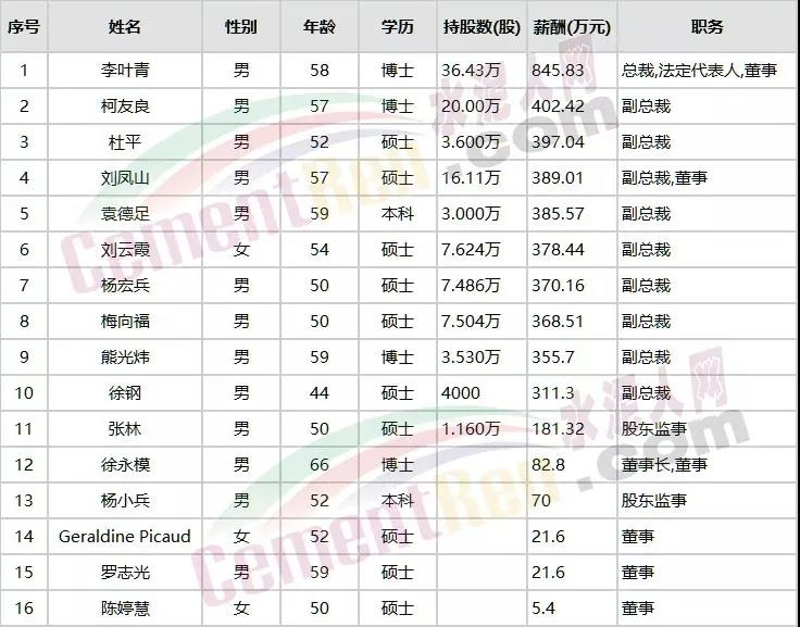 八、高管工資最高的水泥企業(yè)——華新水泥