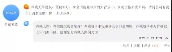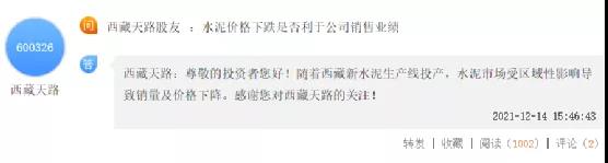 此前,西藏天路在上市平臺回復(fù)投資者提問時也曾多次提到,西藏地區(qū)水泥市場競爭日益加劇,西藏地區(qū)水泥價格較上年同期下降。
