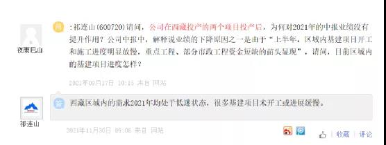 祁連山水泥在上市平臺回復(fù)投資者關(guān)于西藏投產(chǎn)的兩個項(xiàng)目相關(guān)問題時亦有表示,西藏區(qū)域內(nèi)的需求2021年均處于低迷狀態(tài),很多基建項(xiàng)目未開工或進(jìn)展緩慢。