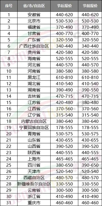 據(jù)水泥人網(wǎng)信息中心數(shù)據(jù),近期通知上調水泥價格的區(qū)域落實情況相對較差。對比節(jié)前報價來看,僅江蘇、四川區(qū)域出現(xiàn)小幅上漲,其他區(qū)域與節(jié)前基本持平。