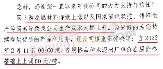 云南水泥漲價(jià)通知