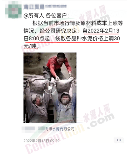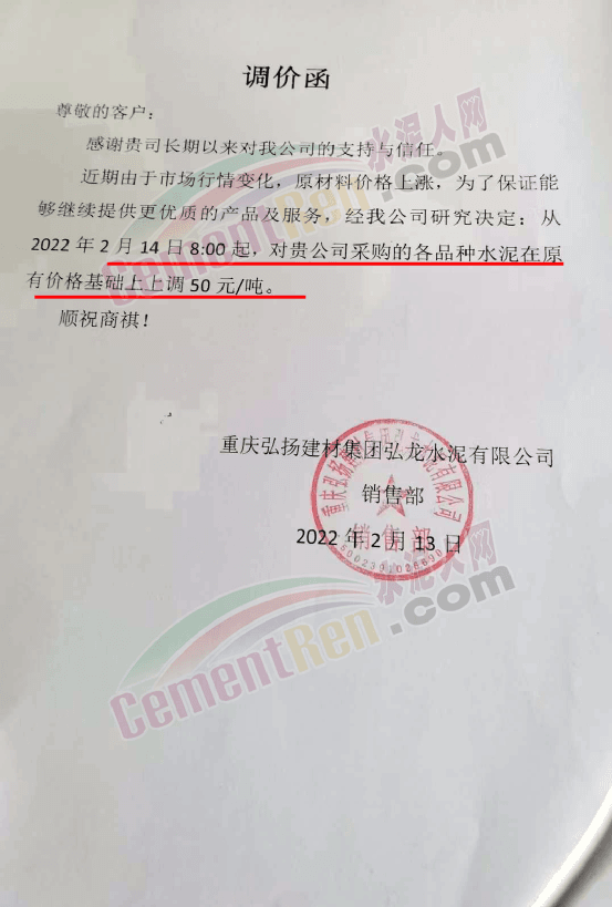 弘龍水泥漲價(jià)通知