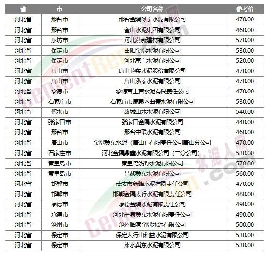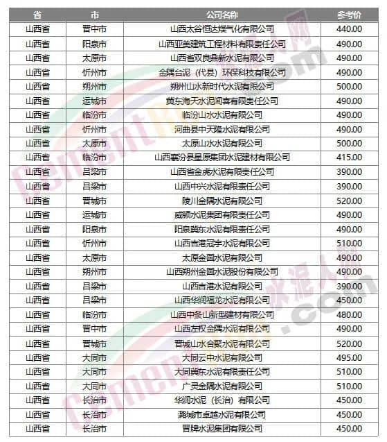 數(shù)據(jù)來(lái)源:水泥人網(wǎng)信息中心人工采集,僅供參考。如與實(shí)際成交不符,請(qǐng)以實(shí)際成交為準(zhǔn)。