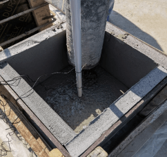 本次CF120超高強(qiáng)泵送混凝土和易性良好,出機(jī)坍落擴(kuò)展度700mm,倒置坍落度筒排空時間為5.8秒,各項(xiàng)指標(biāo)均達(dá)到預(yù)期設(shè)計效果,能滿足超高層和長距離泵送的要求。在廠區(qū)內(nèi),采用泵送方式澆筑成型7個立方體試模(邊長0.5m),技術(shù)人員全程采集了該混凝土的生產(chǎn)工藝參數(shù)、泵送壓力、澆筑速率和溫度監(jiān)測等數(shù)據(jù),為公司CF120超高強(qiáng)混凝土的生產(chǎn)澆筑積累了寶貴經(jīng)驗(yàn)。