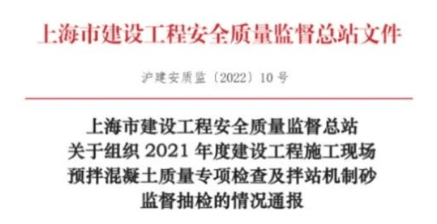 日前,上海市建設(shè)工程安全質(zhì)量監(jiān)督總站發(fā)布《關(guān)于組織2021年度建設(shè)工程施工現(xiàn)場預(yù)拌混凝土質(zhì)量專項檢查及拌站機制砂監(jiān)督抽檢的情況通報》稱,為防范工程質(zhì)量事故發(fā)生,加強混凝土質(zhì)量管控,規(guī)范見證取樣行為,針對目前機制砂來源不穩(wěn)定、質(zhì)量控制難度大的情況,上海市建設(shè)工程安全質(zhì)量監(jiān)督總站于2021年3月-12月,在全市范圍內(nèi)開展建設(shè)工程施工現(xiàn)場預(yù)拌混凝土質(zhì)量專項檢查及混凝土攪拌站機制砂(人工砂)監(jiān)督抽檢。