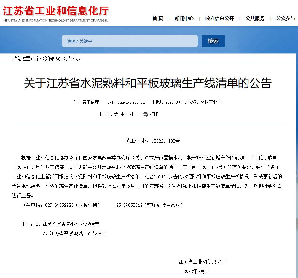 日前,江西省工業(yè)和信息化廳發(fā)布了江西省水泥熟料、平板玻璃生產(chǎn)線情況的公告。