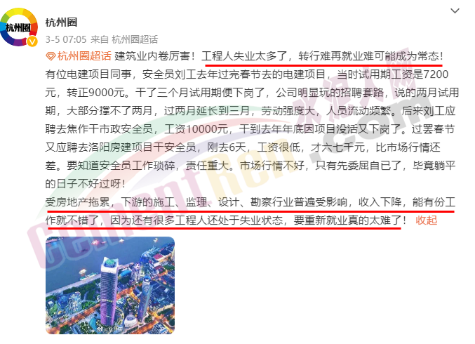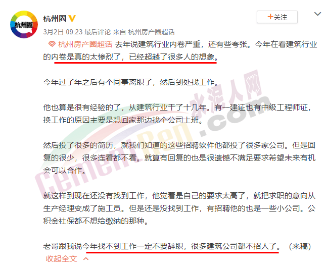 去年說建筑行業(yè)內卷嚴重,還有些夸張。今年在看建筑行業(yè)的內卷是真的太慘烈了,已經超越了很多人的想象。今年過了年之后有個同事離職了,然后到處找工作。