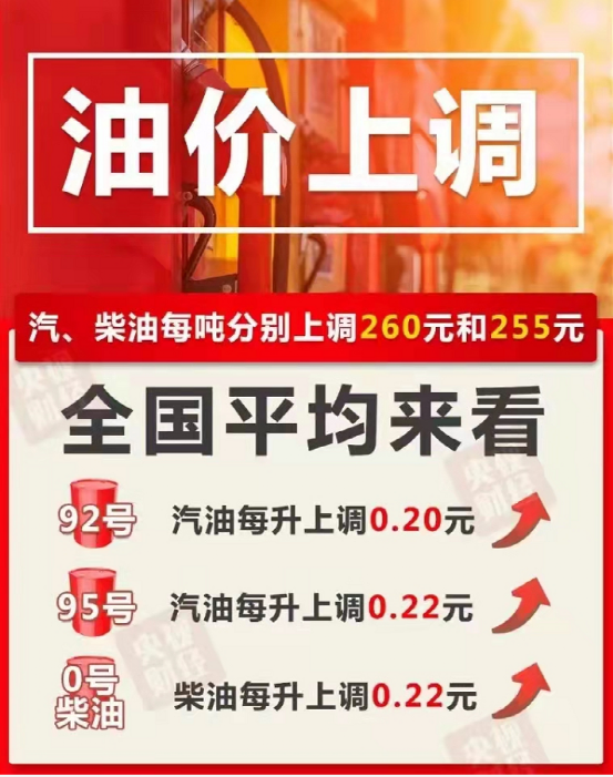 3月3日24時,全國油價如期上調實現五輪連漲。平均來看92號汽油每升上調0.2元;95號汽油每升上調0.22元;0號柴油每升上調0.22元。