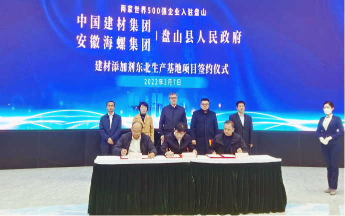 2022年3月7日下午,安徽海螺新材料科技有限公司與中國建材下屬北方水泥有限公司、海南清源企業(yè)管理中心簽署《盤錦海中新材料科技有限公司合資協(xié)議》。