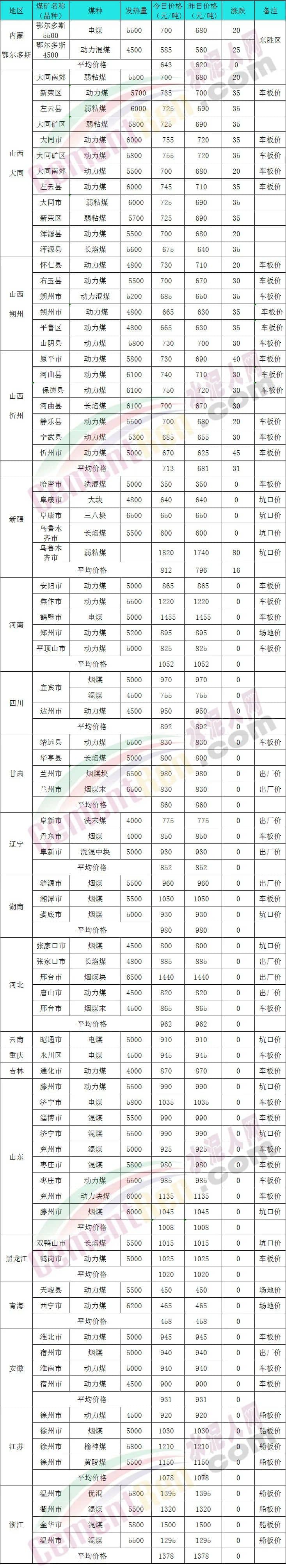 全國煤炭地區(qū)價(jià)格一覽