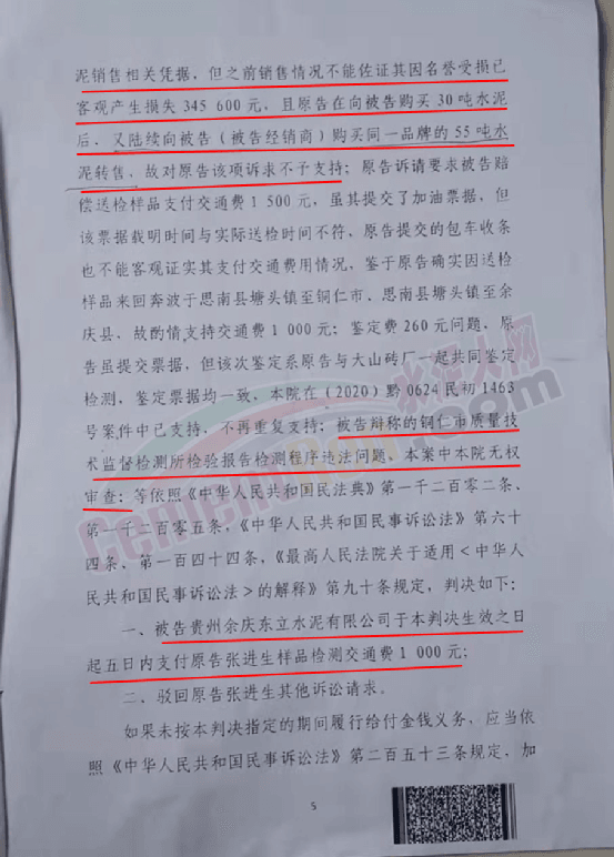 貴州省思南縣人民法院民事判決書(shū)顯示東立水泥公司庭審后提交答辯狀辯稱,原告名譽(yù)是否受損與被告無(wú)因果關(guān)系、原告要求被告恢復(fù)名譽(yù)、賠償損失無(wú)事實(shí)和法律依據(jù);因樣品檢測(cè)程序違法,對(duì)檢測(cè)報(bào)告不予認(rèn)可,該檢測(cè)報(bào)告也不應(yīng)被法院采納; 原告主張的經(jīng)濟(jì)損失345600元的請(qǐng)求權(quán)基礎(chǔ)不明,且并未提供該損失因水泥質(zhì)量導(dǎo)致,不應(yīng)支持,請(qǐng)依法駁回原告訴訟請(qǐng)求。