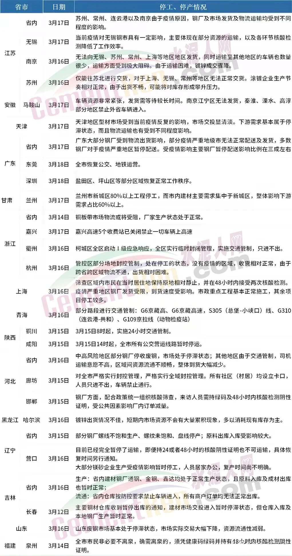 1 江蘇省內蘇州、常州、連云港以及南京由于疫情原因,鋼廠及市場發(fā)貨及物流運輸均受到不同程度的影響。